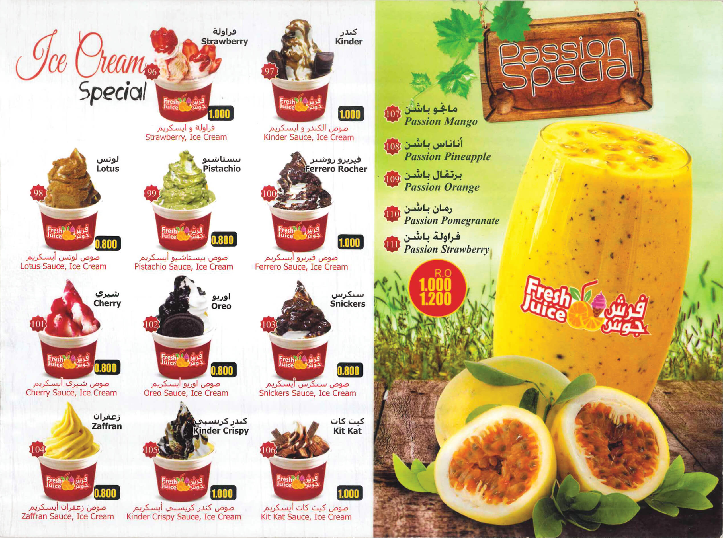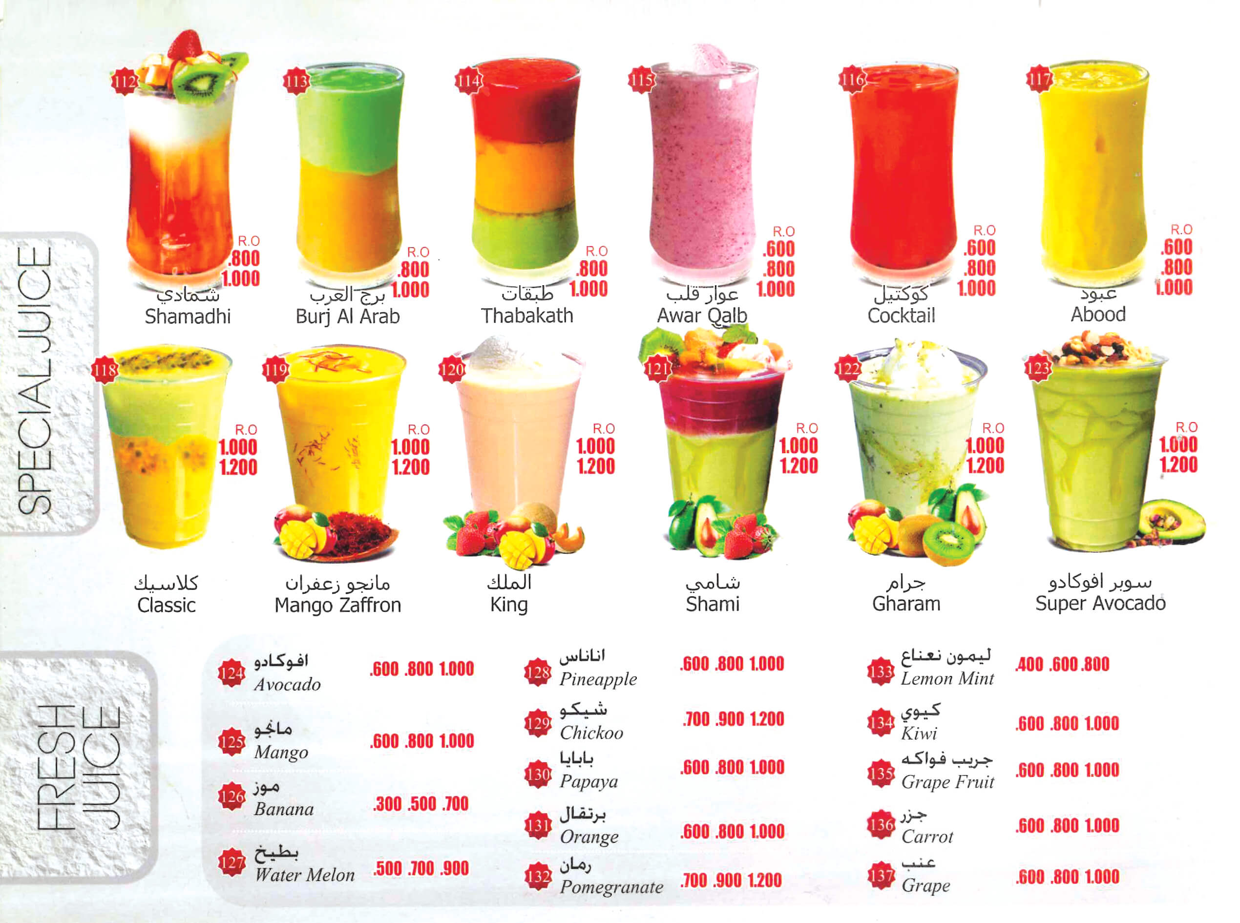 Fresh Juice Oman Menu